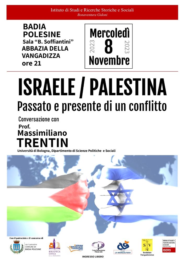 Badia Polesine (RO) – La diffusa necessità di comprendere e conoscere in maniera più chiara le origini, gli sviluppi e la condizione della situazione in Medio Oriente alla luce dell’attuale conflitto in corso, ha portato l’Associazione ISERS – Istituto di Studi e Ricerche Storiche e Sociali “Bonaventura Gidoni”, con il patrocinio dell’Amministrazione Comunale, a organizzare una serata di informazione sulla tematica.