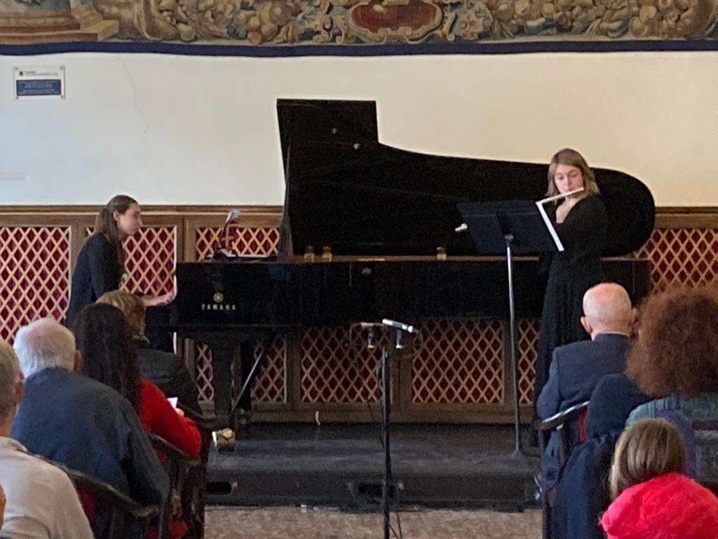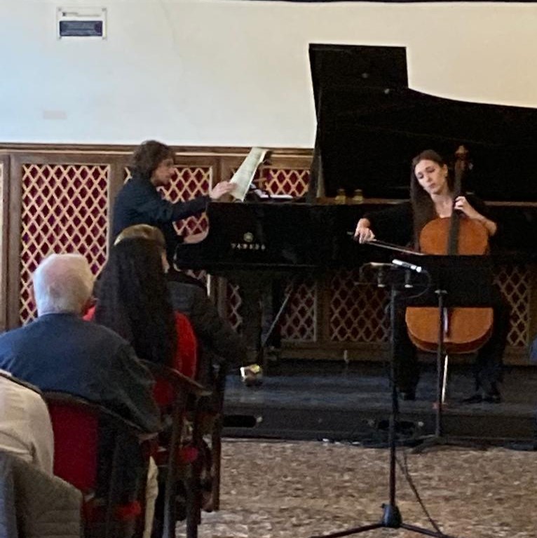 Le tre composizioni, diversissime tra loro, sono state eseguite dal duo Alessia Bruno violoncello e Carlo Alberto Bacchi pianoforte che, al dominio tecnico delle partiture, ha coniugato un’eccellente lezione di stile, dai nitidi e precisi intarsi beethoveniani alla libertà salottiera della romanza, fino ai severi suoni, ora profondi e potenti, ora di dolcezza alle soglie del silenzio, del Gesang op. 121 n. 3 di Brahms.