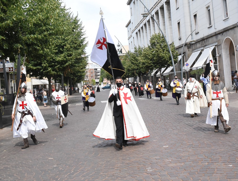 I Cavalieri, le Dame, i Novizi e le delegazioni provenienti da tutta Italia, in rappresentanza anche di altri “ordini”, si sono dati appuntamento alle ore 10.00, in Piazza Matteotti, luogo dell’adunata. Alle 10,30, inquadrati secondo un antico ordine i Cavalieri, le Dame e i Novizi. investendi con il baussant in testa e lo stendardo in coda, sono partiti in processione, preceduti dai tamburini di Stienta, gli armigeri della Compagnia della Lince del Maestro Nicola Roveroni e hanno attraversato le vie cittadine, per arrivare al Tempio della Beata Vergine del Soccorso, luogo della Cerimonia.