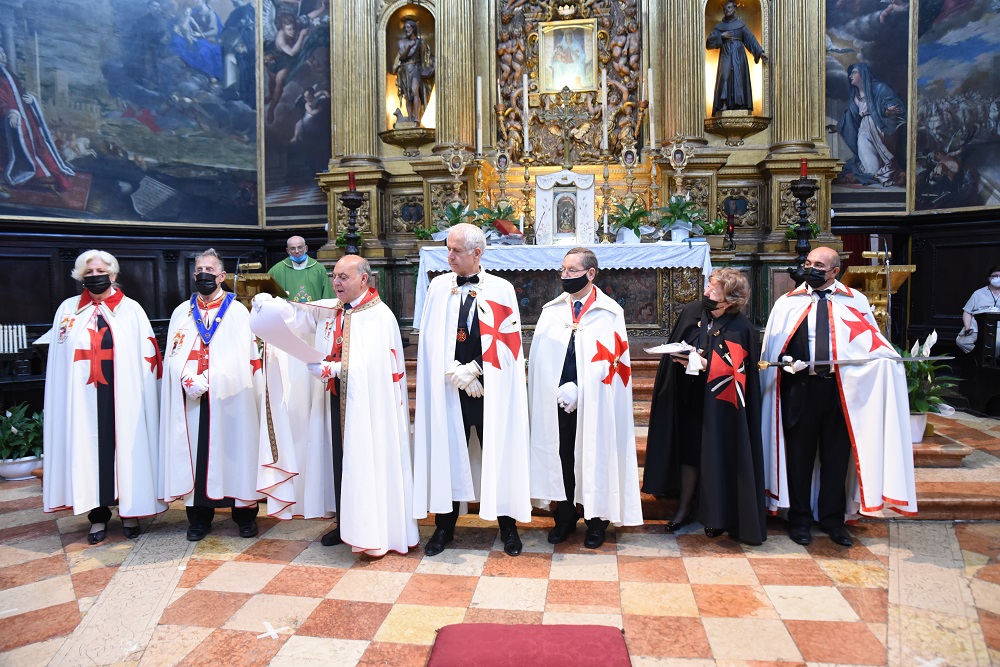 Alle ore 11.00, don Gianluca Colato, rettore della Comunità della Madonna di Lourdes di Cerea, ha ufficiato la Santa Messa, impreziosita dai canti gregoriani del Coro della Maestra Arduini. È stata una fucina di forti emozioni, momenti commoventi, soprattutto nella parte della recita del Memorare di San Bernardo di Chiaravalle da parte della Dama di Commenda Ida Maria Stoppa. A seguire, il Priore delle Tre Venezie Raffaele Mautone, coadiuvato dal Siniscalco Luca Stefano Callegaro e da Don Gianluca Colato, secondo un antico rituale, ha proceduto all’investitura di sei Dame e cinque Cavalieri.