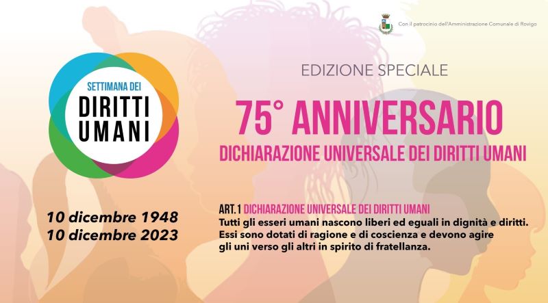 ROVIGO – Dopo il successo della prima edizione, tenutasi lo scorso luglio, torna a Rovigo dal 4 al 10 dicembre la “Settimana dei diritti umani”, un’edizione speciale dedicata al 75° anniversario della Dichiarazione universale dei diritti umani.