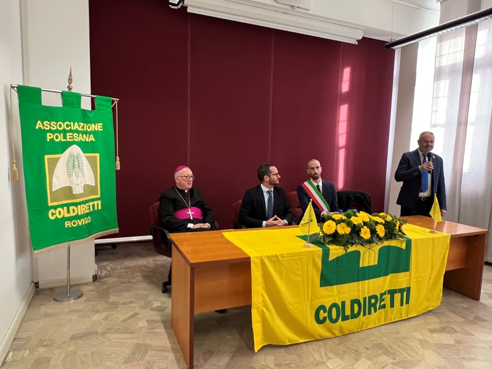 Il primo momento istituzionale si è tenuto nella sala comunale alla presenza del sindaco Federico Ragazzi, della dirigenza Coldiretti capitanata dal direttore Gerardo Forina Rampolla e dal presidente Carlo Salvan, il Vescovo Pierantonio Pavanello e le istituzioni del territorio. A dare il benvenuto il presidente di zona Sandro Trombella che ha ringraziato tutti coloro che hanno contribuito attivamente per la realizzazione dell’evento.