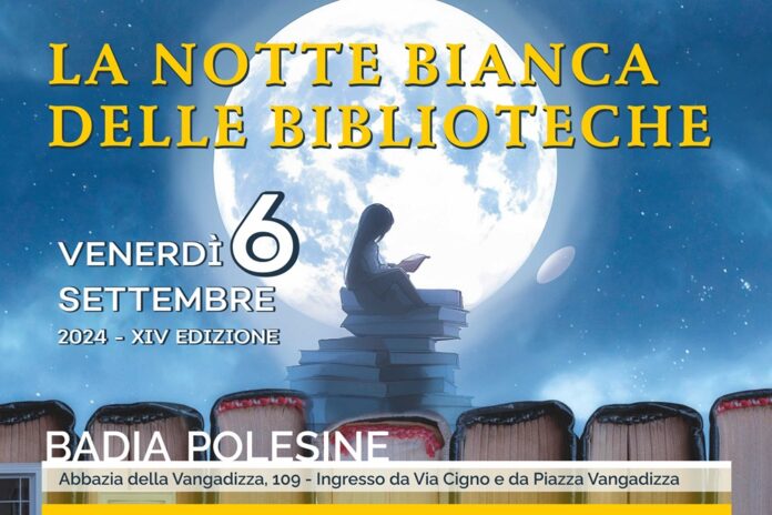 Badia Polesine (RO) – Grande attesa per la XIV edizione de “LA NOTTE BIANCA DELLE BIBLIOTECHE”, iniziativa in programma venerdì 6 settembre, promossa dalla Provincia di Rovigo in collaborazione con l’Amministrazione Comunale.