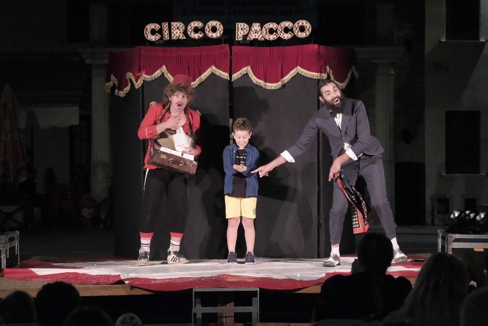 Costa di Rovigo (RO) – Chiusura di risate per “Il teatro siete voi-voglia di vivere”, la rassegna estiva di teatro e circo-teatro per famiglie, ideata da Irene Lissandrin con ViviRovigo, sostenuta da Provincia di Rovigo e Arteven, circuito della Regione Veneto. Sabato sera, 16 settembre, è andato in scena da piazza San Giovanni a Costa di Rovigo, l’ultimo spettacolo in programma: la visual comedy di clownerie pluripremiata “Paccottiglia deluxe: cialtroneria di qualità superiore” del duo torinese, Alessandro Galletti e Francesco Garuti, fondatori della compagnia “Circo Pacco”. Novità assoluta per il Polesine.