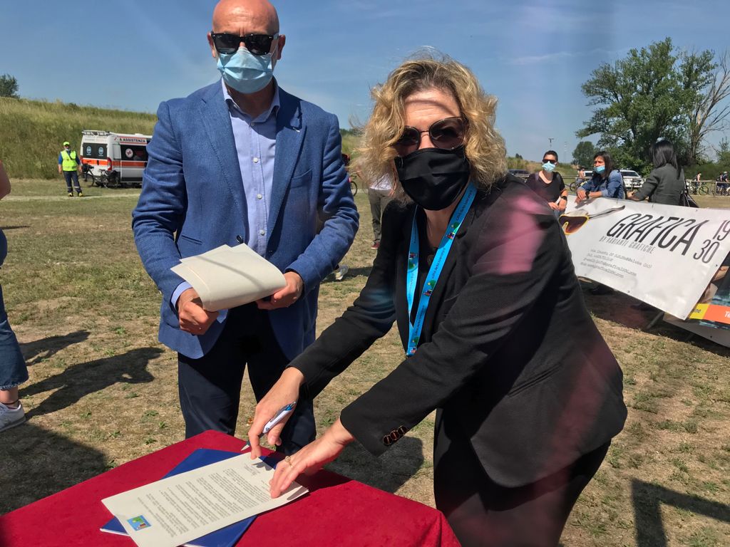 Il sindaco Sondra Coizzi e l’assessore allo Sport Lorenza Bordin hanno firmato, domenica 23 maggio, un documento che sancisce il gemellaggio del Comune di Occhiobello con la Città della speranza di Padova.