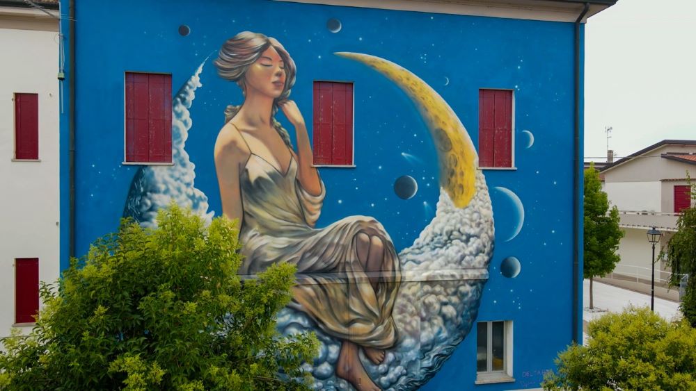 Si tratta del terzo murales dell’artista di Montebelluna (TV) per l’undicesima edizione di DeltArte, ideata e curata da Melania Ruggini e dedicata al sogno come spiega il titolo “Follow your dreams – segui i tuoi sogni”.