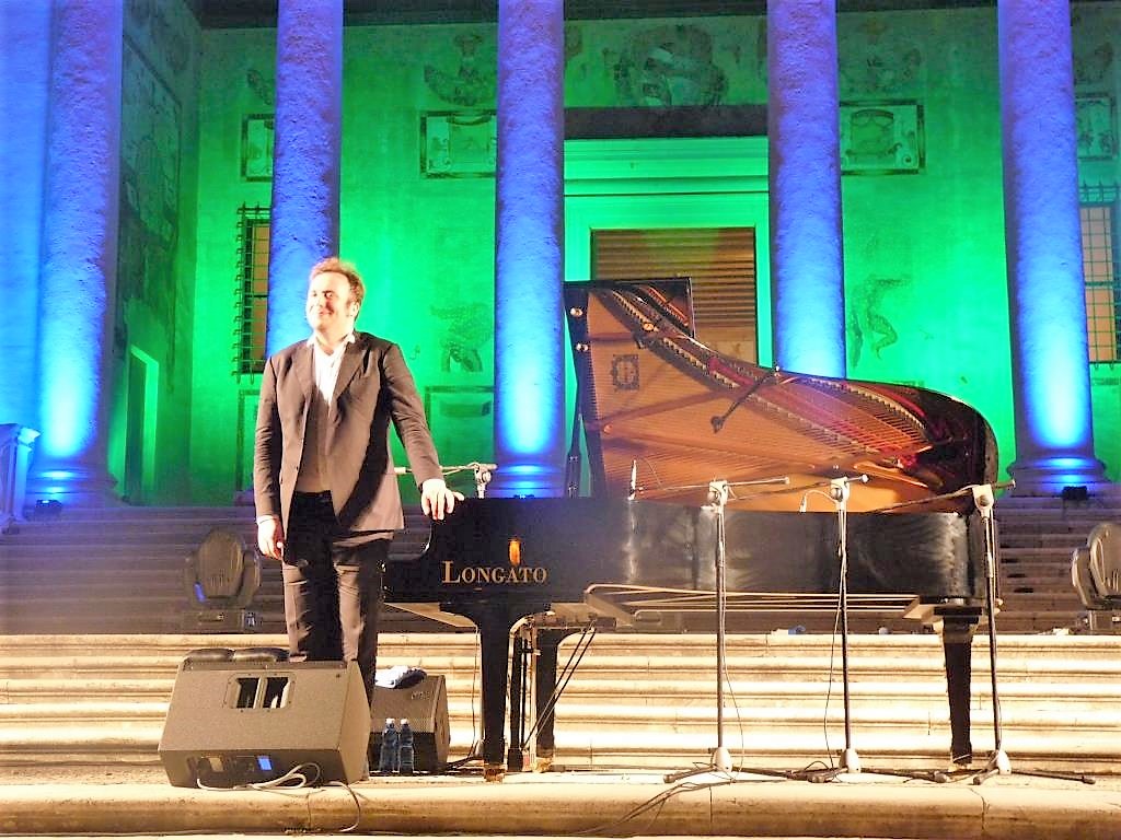 Due ore di grande sound, senza un calo di tensione; solo lui col suo piano a coda, mescolando sonorità vintage con suoni contemporanei. Esordisce con “A good woman” del grande musicista blues americano Roosevelt Sykes, «uno dei miei maestri virtuali», dice. «Un brano che al contrario delle nostre aspettative di una società evoluta – spiega – non vuol dire ‘una donna buona’, ma ‘una buona donna!». «Il prossimo brano è un divertissement che celebra il maestro Giuseppe Verdi, sull’aria ‘Coro di zingarelle e matador”, che per compensare il primo brano sarà solo ‘Coro di zingarelle’, senza matador».