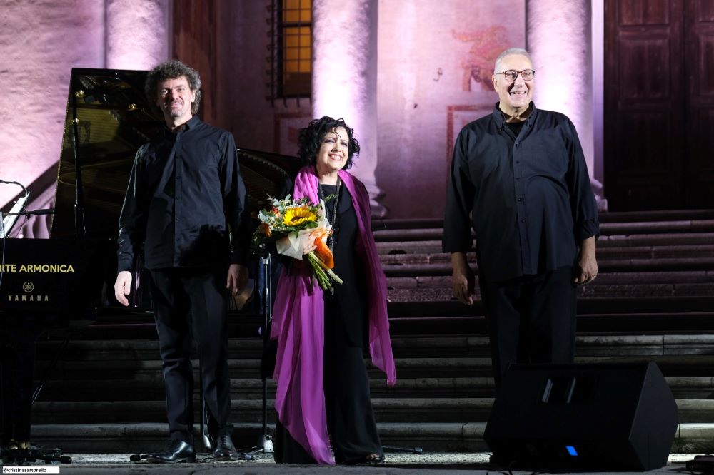 La voce di Antonella Ruggiero arriva in platea carica di colori e luminosità, con vibrazioni che solleticano il pensiero, dolcezza infinita e riverberi evocativi: sottolineata dal vocoder del produttore e arrangiatore Roberto Colombo, sul palco come musicista, anche al sinth; al pianoforte un grandissimo Roberto Olzer che ha fuso melodie iconiche con la voce, altrettanto melodiosa di Antonella, senza che le une prevalessero sull’altra e viceversa.