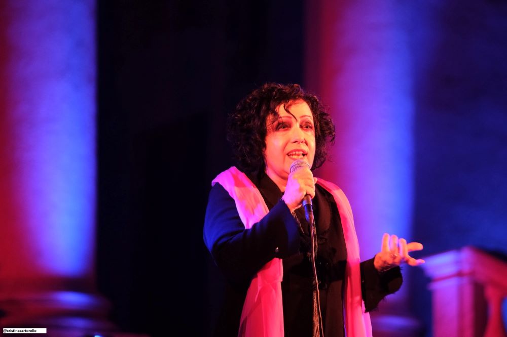 Un viaggio sonoro, aveva detto l’artista in apertura. E così è stato: viaggio nel tempo di certi brani rispolverati dai cassetti preziosi della memoria, come “Tu musica divina” (1940, Alberto Rabagliati, dedicato a Giacomo Matteotti e a tutti quelli che ascoltavano avidamente bella musica alla radio negli anni fra le due guerre; e viaggio attraverso i continenti, dalla tradizione indù: “Tu mhi Shiva” con i mantra ed i sonagli; al Kyrie congolese “perché ogni cultura ha dimostrato amore nei confronti del sacro”, alla Genova degli anni 60-70, con una perla di Bruno Lauzi, Ritornerai. Antonella prende tutta la musica che le piace e la trasfigura in un canto d’amore universale, ne tira fuori tutta la potenzialità evocativa, i sentimenti atavici che accomunano l’essere umano e la offre al pubblico con semplicità. Il concerto apre con i suoi brani più celebri: “Amore lontanissimo”, Controvento, “Per un’ora d’amore”, “Echi d’infinito”. Poi ci sono dei veri e propri camei regalati come fossero caramelle: un’incursione nel canzoniere del conterraneo De André con “Canzone dell’amore perduto” e “Creuza de ma” e una vibrante “Impressioni di settembre”, che pare esser avvolti dalla nebbia del mattino, accanto a quel cavallo immaginato dalla Pfm. Il pubblico applaude già alle prime note dei brani storici, canta, applaude ripetutamente. “Aristocratica”, che era uno dei suoi brani preferiti nel repertorio dei Matia Bazar, sembra un brano modernissimo. E, poi, si chiude fra gli applausi con “Vacanze romane”. Ovazione infinita e prolungata della sterminata platea della villa, che fa anche una certa impressione.
