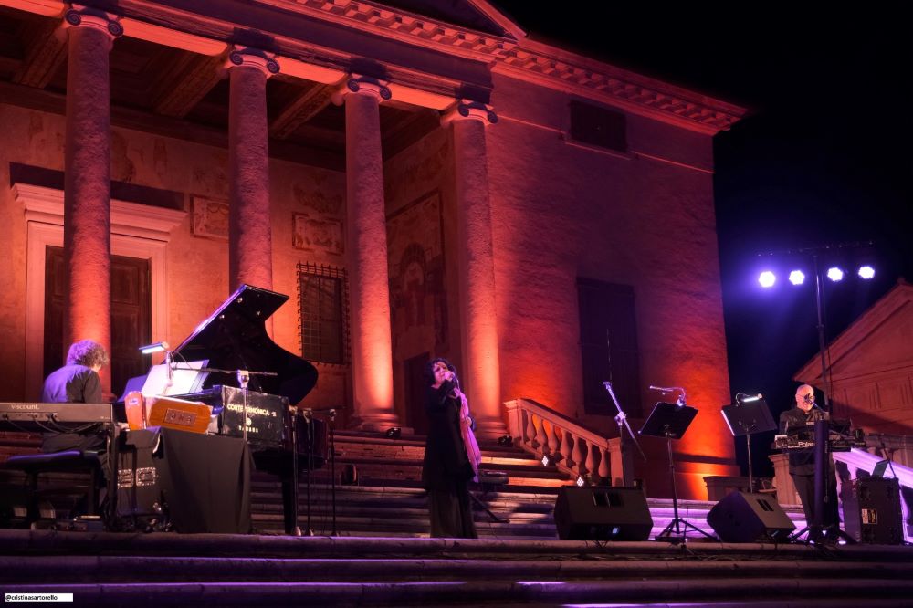 Fratta Polesine (RO) – Standing ovation e fiori del Comune di Fratta per Antonella Ruggiero, il cui “Concerto versatile” ha chiuso in bellezza mercoledì 23 agosto la stagione 2023 di “Tra ville e giardini – Itinerario di musica e teatro”, edizione 24. In un’afosa serata agostana, avvolta dall’affetto caloroso del pubblico che riempiva letteralmente il giardino di Villa Badoer, dipinta di luce, l’artista genovese ha acceso la sua inconfondibile voce in un viaggio sonoro dalle mille suggestioni, avanti e indietro per il tempo e per il globo. Tornava dopo 16 anni alla manifestazione, sempre in Villa Badoer, ed il Polesine l’ha accolta davvero con amore: concerto sold out fin dalla prevendita, centinaia di telefonate al booking per cercare biglietti, riserve posti esaurite, decine di persone al botteghino con la speranza di poter entrare pur rimanendo in piedi. Tanta gente in coda anche alle visite guidate al sito palladiano, che la Provincia di Rovigo, ente proprietario, ha ripristinato con successo da questa edizione.