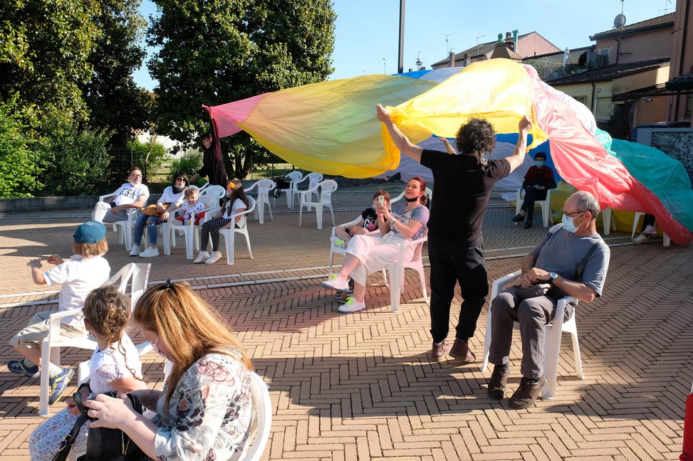 Villanova del Ghebbo (RO) – Spettacolo delle novità quello di domenica 30 maggio nell’assolata piazza Monsignor Porta a Villanova del Ghebbo (Ro). La rassegna itinerante per ragazzi “Il teatro siete voi” ha inaugurato la modalità en plain air, ed il motivetto ossessivo “Cra cra cra” del ranocchio canterino, sarà il nuovo tormentone estivo portato a casa dai piccoli spettatori per la gioia dei grandi.