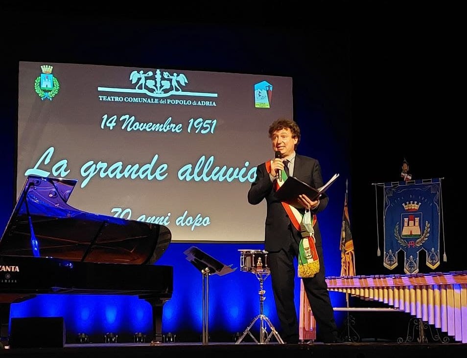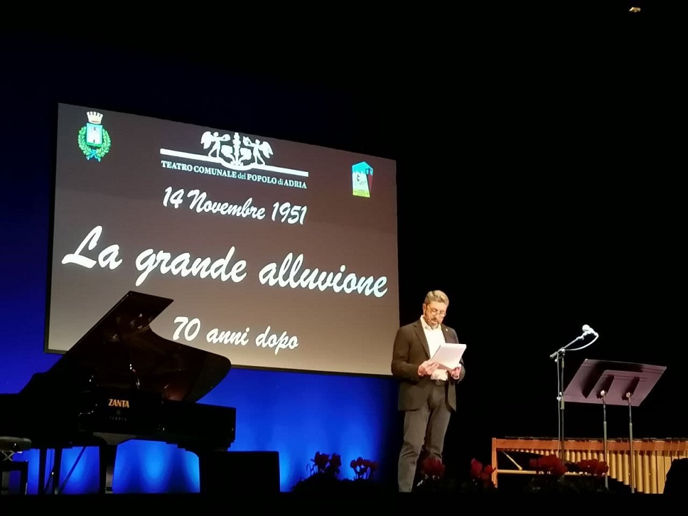 Adria (RO) – Domenica 14 novembre 2021, si è svolta la cerimonia commemorativa promossa dall’amministrazione comunale per i 70 anni dalla Grande Alluvione. Un evento che in Teatro Comunale ha visto l’ampia partecipazione di diversi rappresentanti delle istituzioni. «Abbiamo iniziato gli eventi dedicati ai 70 anni dall’alluvione del 1951, con la mostra realizzata dagli alunni del Comprensivo Adria 1, in sala Cordella, e agli studenti del Conservatorio Statale Antonio Buzzolla di Adria, abbiamo affidato la chiusura della serata del 14 novembre». Sono le parole pronunciate dal Sindaco Omar Barbierato.