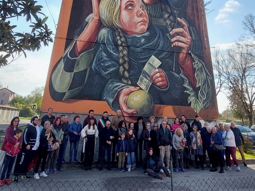 Il foglietto tra le mani della bimba rimanda infatti al quartiere popolare sorto lungo l’antica strada arginale detta Cengiaretto, che nel 1943, in seguito alla caduta del fascismo, fu rinominato Borgo XXV luglio. «La vicenda mi ha fatto ripensare alla libertà riconquistata con la liberazione che era anche possibilità di dissentire, di esprimere opinioni diverse da quelle di un regime, diritto mai scontato e che spesso rischiamo di sottovalutare».