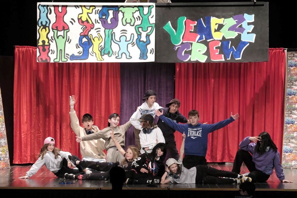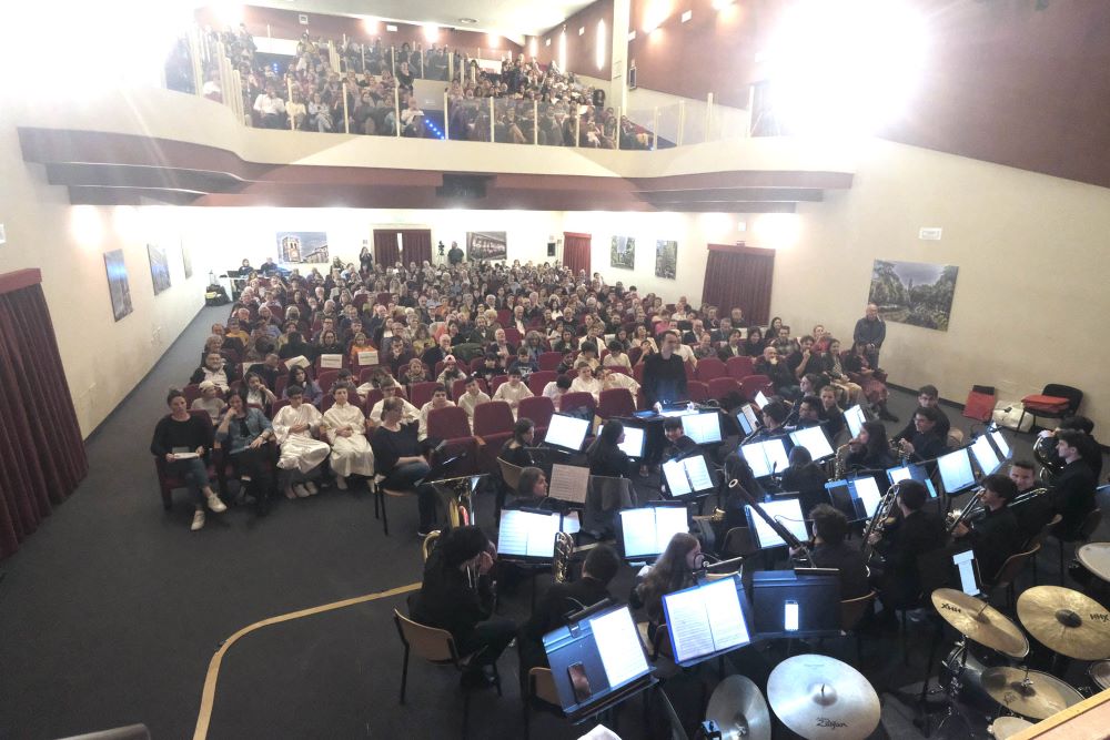 Il primo spettacolo a salire sul palco per affrontare il giudizio della giuria e del pubblico in sala (che vota come 11mo giurato), è stato il musical “Sister act”, allestito dalla Scuola media Venezze annessa al Conservatorio di Rovigo, che si è esibita insieme alla formazione orchestrale studentesca di fiati Venezze young wind band & friends. Un’ammirevole compagine di oltre cento ragazzi, tra attori, coristi, ballerini, scenografi, musicisti e maestranze di palco, diretta da Valentina Zordan e Giulia Zen, che hanno anche rielaborato il testo drammaturgico dal celebre film del 1992 “Sister act”, di Emile Ardolino con il premio Oscar Whoopi Goldberg. Lo spettacolo è il risultato di un progetto corale annuale della scuola, che prevede laboratori di recitazione, di danza, di prove orchestrali e di scenografia, curata nello specifico da Alessandro Lombardo. Ma in “una grande famiglia”, come dicono gli insegnanti, c’è anche tutto un contorno comunitario in cui tutti collaborano, il personale scolastico sicuramente, ma anche le famiglie (nonne sugli scudi), per il supporto alla sartoria, agli allestimenti, alla logistica, “alle pizze” e a tutto quello che serve.