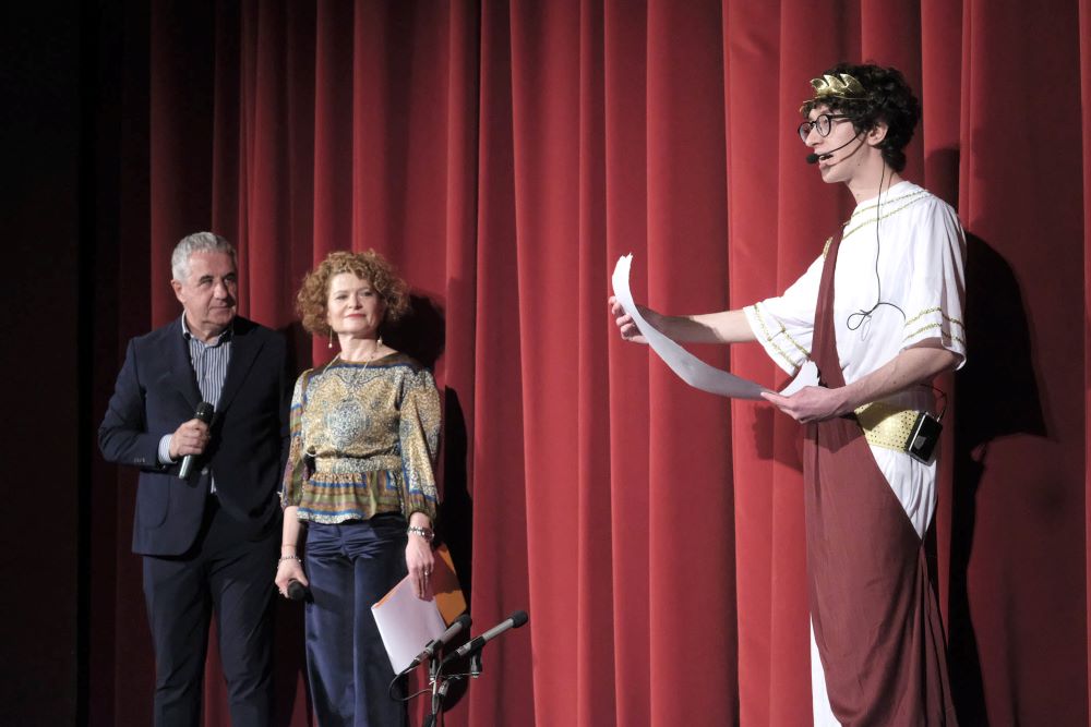 Lendinara (RO) – Con la declamazione dei “principi del teatro” da parte del dio delle arti Apollo, il giuramento di rispetto dei valori teatrali ripetuto in coro dal pubblico e l’inno nazionale cantato in piedi, è partita, ieri sera 3 maggio al Ballarin di Lendinara, tutto esaurito, la gara teatrale del quarto Premio Tomeo, l’Oscar del teatro dei ragazzi del Polesine.