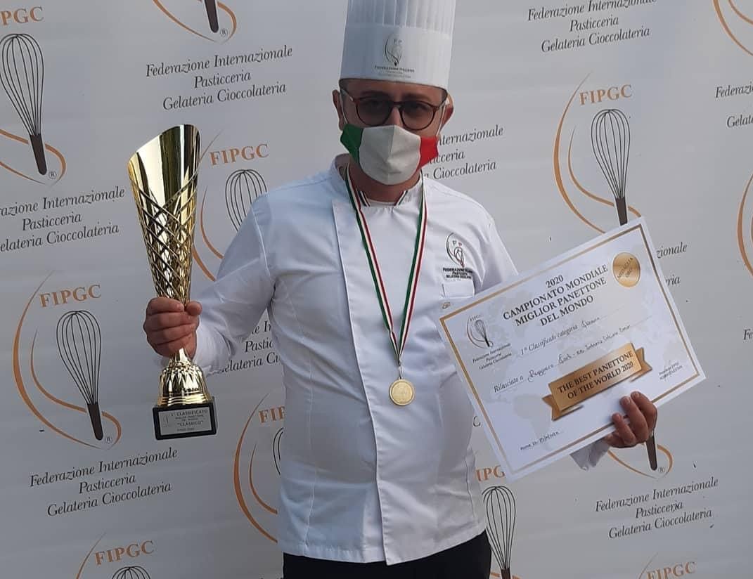 In questa occasione il giovane e talentuoso Pastry Chef Ruggiero Carli, segna un nuovo traguardo, questa volta con la medaglia d’oro, attribuito al suo Panettone Classico, durante il contest Mondiale organizzato dalla Federazione Internazionale Pasticceri Cioccolatieri e Gelatieri, un dolce lievitato di grande equilibrio, giudicato eccellenza della pasticceria italiana nel complesso dell’analisi sensoriale.