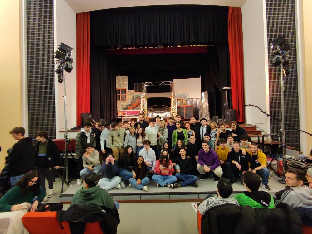 L’incontro è terminato con i selfie di rito, sul palcoscenico, insieme studenti e interpreti dello spettacolo, felici di condividere la gioia della musica, ma soprattutto la lingua inglese.