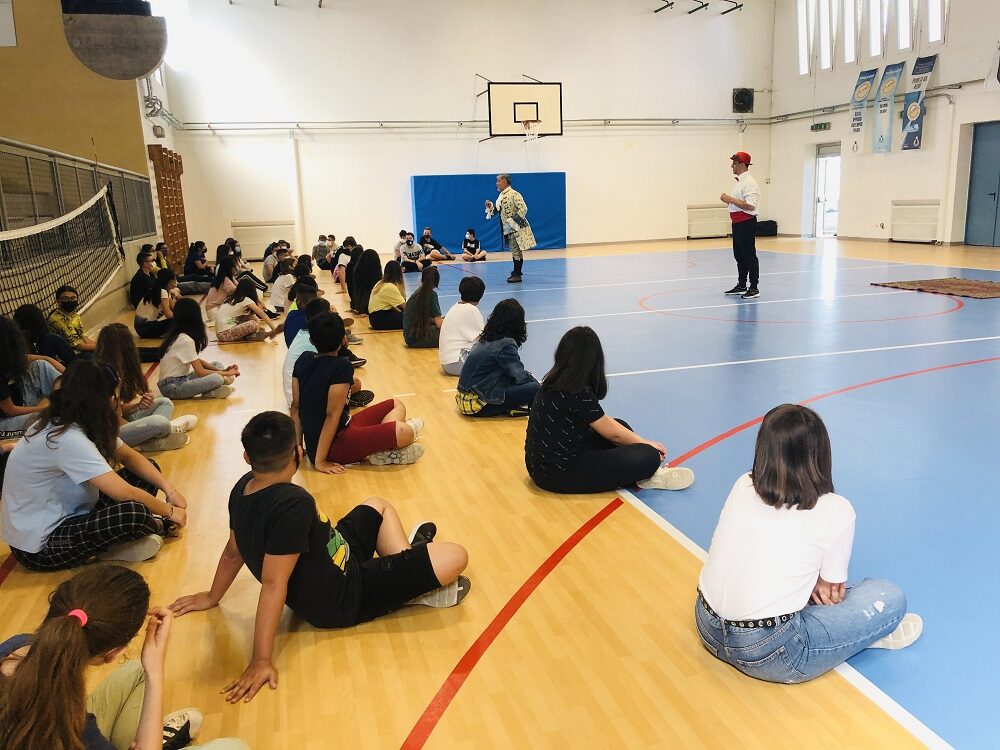 Divertimento e scie di buonumore è sempre il marchio di “Tutti in bolla”, spettacolo un po’ clownesco e un po’ commedia dell’arte, che di volta in volta si adatta al pubblico per farlo partecipare alle gag. Dall’inizio alla fine gli alunni sono stati coinvolti nei dialoghi e nelle scene, catapultati nelle situazioni equivoche più comuni per gli adolescenti, dalle prime cotte ai tic dei professori, dalla didattica a distanza ai top/flop della vita scolastica. In un crescendo di risate e applausi fino alle bolle di sapone della conclusione. L’appuntamento con la scuola e coi laboratori scolastici saranno dunque a settembre, ma “Il teatro siete voi” ha ancora molti spettacoli in calendario, che raggiungono tutti i comuni della provincia.