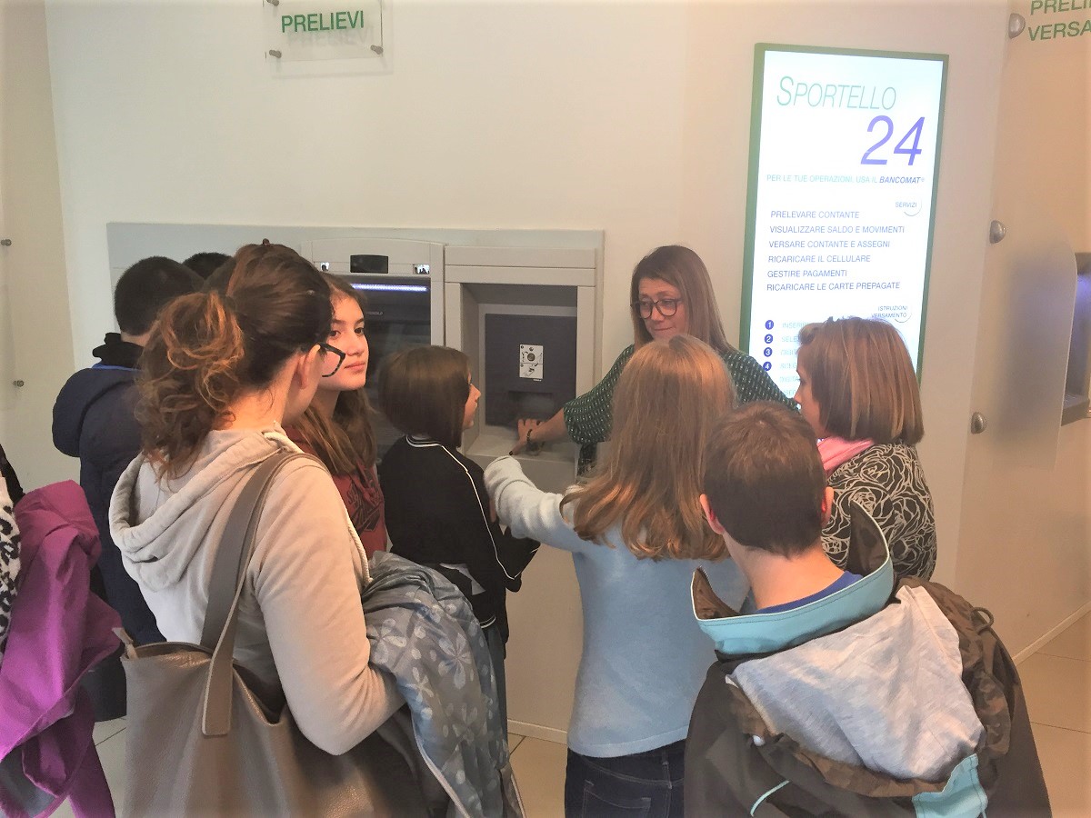 Candita, insieme ai colleghi dell’istituto bancario: Paola Cavazzini, Lucia Bellini, Alberto Bettinelli, Marina Cosentino e Martina Dotti, hanno spiegato ai loro giovani ospiti le funzioni di una banca e quali sono i servizi che vengono offerti.