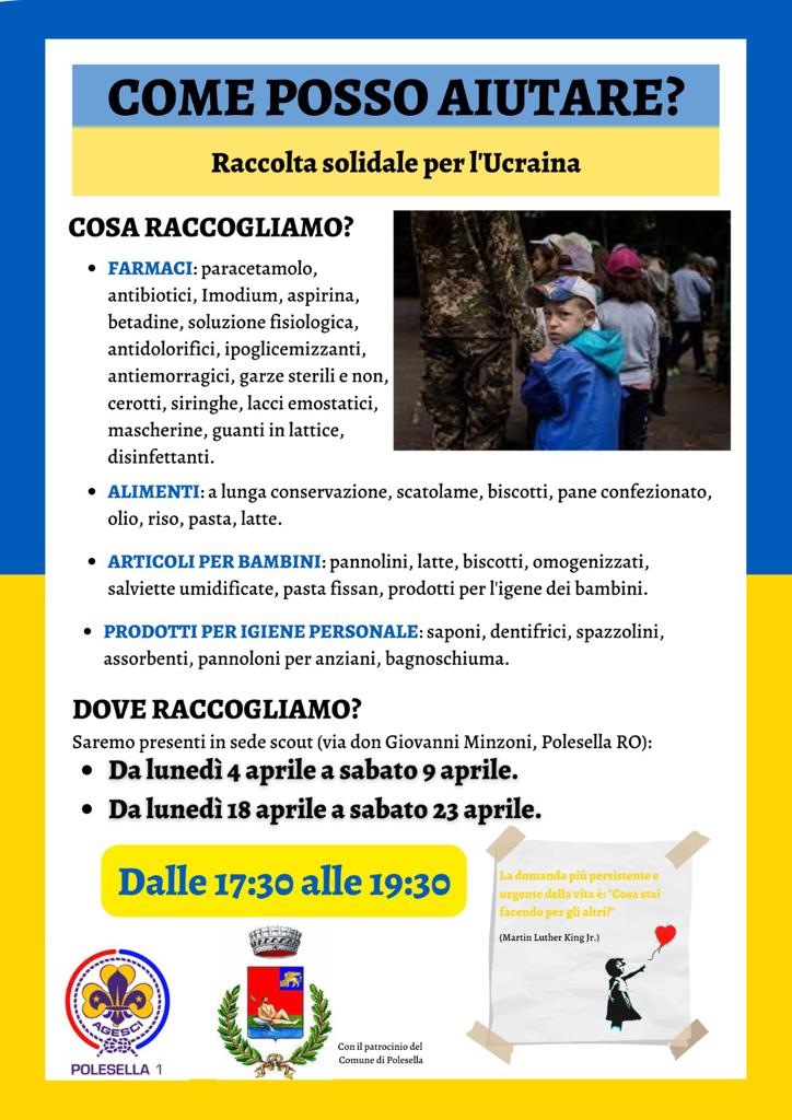 POLESELLA (Rovigo) – La situazione in Ucraina continua a degenerare in modo sempre più preoccupante e, ora più che mai, c’è davvero bisogno di un aiuto continuativo e puntuale per le famiglie rimaste in terra ucraina e per quelle accolte nel nostro Paese. Le raccolte di materiali e l’accoglienza dei rifugiati non possono e non devono fermarsi ora.