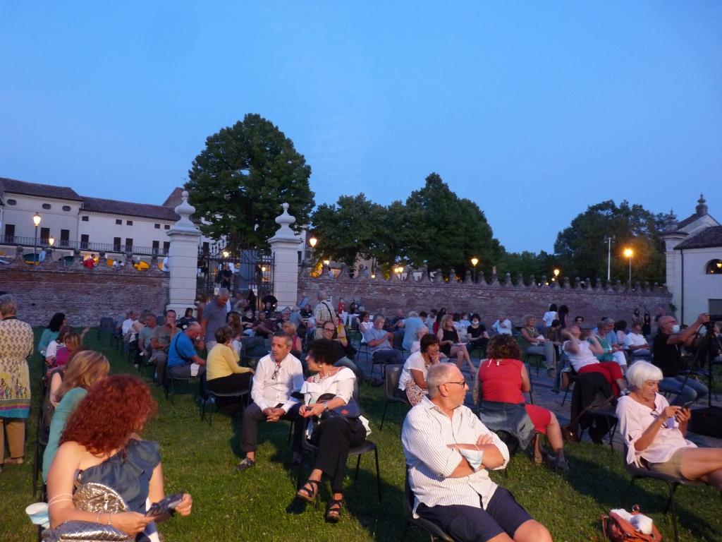 Fratta Polesine (RO) – È andata bene la serata Anteprima di Tra Ville e Giardini 2020, la vetrina che la rassegna di musica e teatro allestisce ogni anno per gli artisti emergenti e noti del Polesine. Si è svolta nella serata di domenica 26 luglio, in Villa Badoer a Fratta Polesine, con un dissimulato sollievo per gli organizzatori, per i quali è stata la prova generale dell’applicazione delle nuove regole degli spettacoli dal vivo. Un meritato sold-out iniziale.