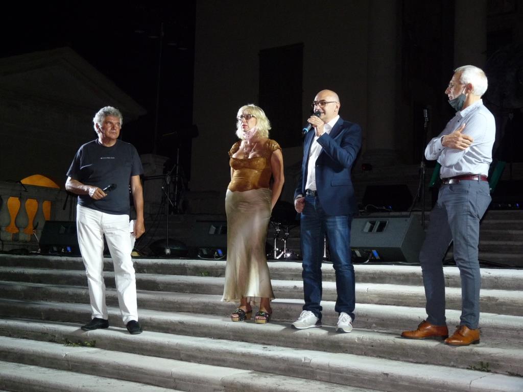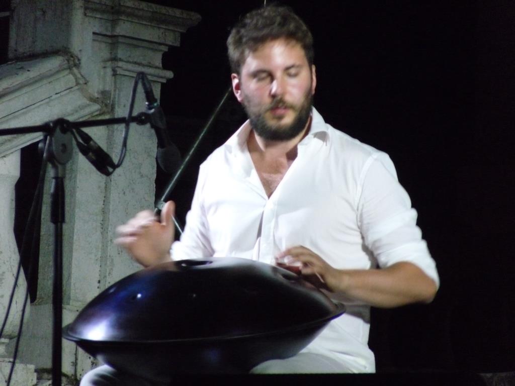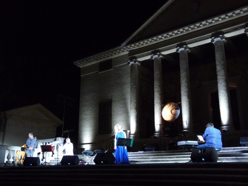 Al pubblico dell’Anteprima è stato offerto uno scenario di penombre e una grande luna dai riflessi metallici, incastonata tra le colonne della loggia di Villa Badoer, patrimonio Unesco, con quell’aria di tempio classico che spalanca le porte agli antichi miti. Dentro questa scenografia soffusa di patos e sospiri notturni, si è delineata l’esibizione della nuova formazione Musica&dintorni trio, in ambo – è il caso di dire – vincente, con Umberto Morris Gallani e il suo hang, che da solo basta a trasportare la mente in atmosfere rarefatte di visioni orientali. I brani presentati, tutti originali, sono un percorso onirico tra musica ambientale e suggestioni poetiche, composti ed eseguiti dal pianista Paolo Lazzarini, con la voce di Sara Padovani e il sax di Marco Monesi. Un’ispirazione del lockdown, guardando la luna dalle finestre di casa e ricordando il mondo felliniano; i brani diverranno presto trasposti in un’opera musicale intitolata “Lunastero”. Immancabile e apprezzato il loro omaggio al compianto maestro Ennio Morricone.
