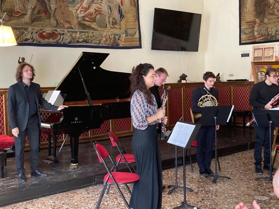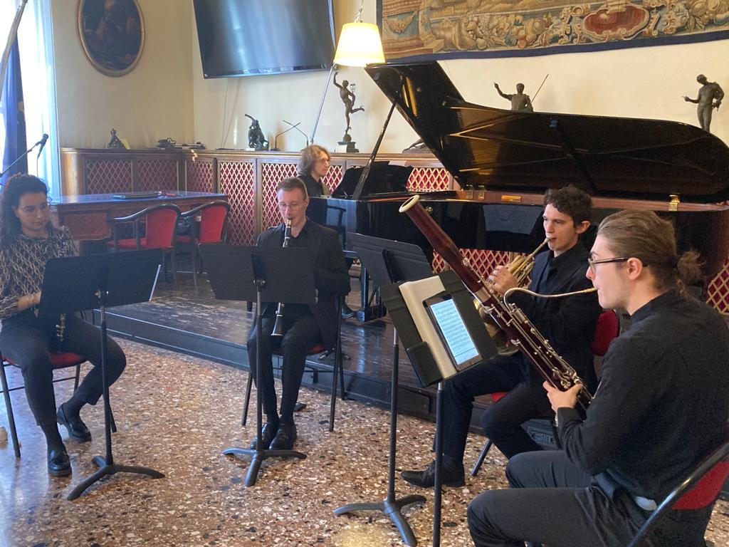 Così, alle danze e ai moduli brillanti ma convenzionali del Divertimento K 270 in cui Camilla Masin flauto, Marta Zese oboe, Enrico Moretti clarinetto, Christian Scalaprice corno e Filippo Tomasi fagotto si sono mostrati, oltre che tecnicamente sicuri, un ensemble solido e ottimamente equilibrato nel rapporto tra strumenti diversissimi tra loro, è seguita l’esecuzione del Quintetto con Carlo Alberto Bacchi pianoforte sempre alla compiuta ricerca di un eccellente tocco raffinato ed elegante sia nei virtuosistici passi solistici sia nelle figure di accompagnamento o sovrapposizione dei quattro fiati, con Marta Zese, Enrico Moretti, Christian Scalaprice e Filippo Tomasi a perfetto agio sia nei passaggi di grande “bravura” solistica, sia nella rapidamente cangiante mappa sonora d’insieme degli episodi ora brillanti e festosi, ora meditativi e ariosi.