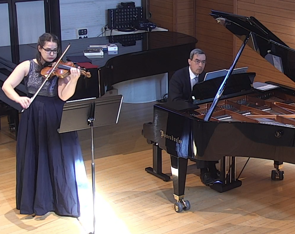 Il programma musicale, introdotto da Giuseppe Fagnocchi, poi al pianoforte in duo con la violinista Elisa Spremulli, è stato dedicato ad una scelta di lavori sui quali Thomas Mann – autore studiato nel corso online di Repertori cameristici nel corrente anno accademico del Conservatorio – ha posto più volte l’accento, come una sorta di Leitmotive wagneriani, in tre sue opere. Anzitutto I Buddenbrook in cui sono esplicitamente suonate una cantilena, ovvero l’Aria sulla quarta corda di Bach, e la musica del Beethoven più “puro e limpido” rappresentato dalla Sonata in fa maggiore op. 24 (“Primavera”), mentre fa la sua comparsa anche la figura di un violinista che interviene con un’esecuzione “zingaresca”. Nella successiva Montagna magica il duo violino-pianoforte propone esplicite “melodie tzigane”, mentre nel Doctor Faustus “alcuni bis zingareschi” sono nuovamente associati a Bach e Beethoven: da questi elementi è derivato l’impaginato del concerto che si è pertanto concluso con la Tzigane per antonomasia, quella di Ravel e, al termine degli applausi finali con il Liebesleid di Kreisler come fuori programma.