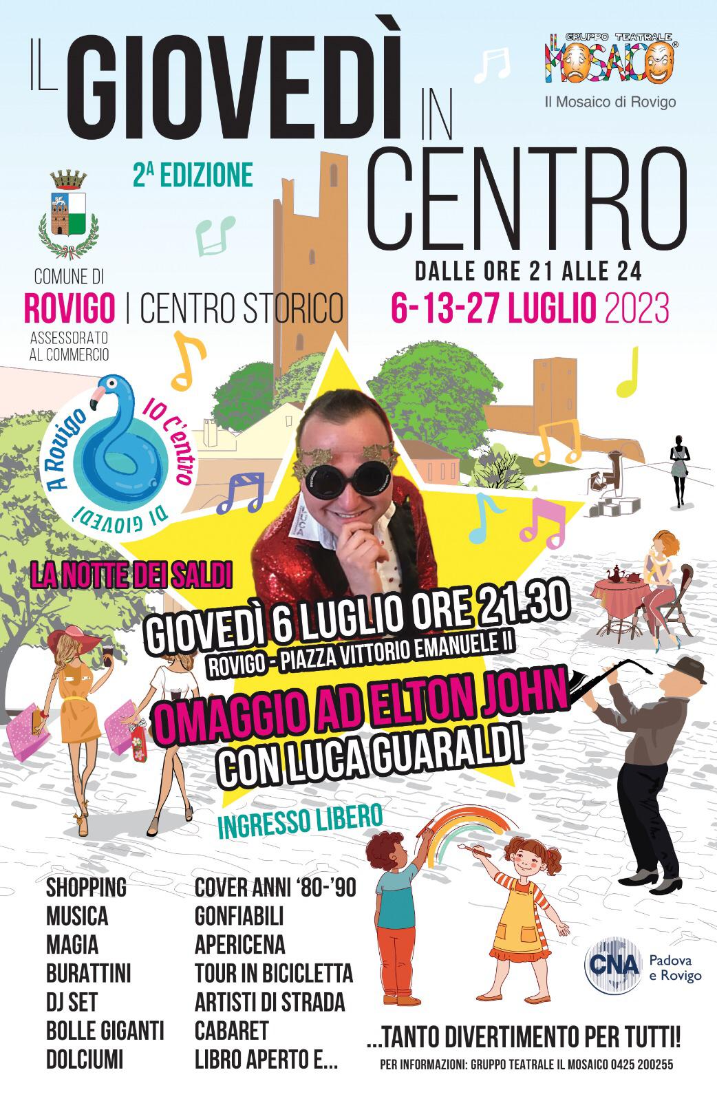 «Non cambia molto rispetto al format dello scorso anno, ovvero unire lo shopping all’intrattenimento – ha spiegato Emilio Zenato, responsabile artistico della manifestazione – ”Il Giovedì in Centro” è un momento molto atteso. Supportare le attività commerciali e allietare le serate estive dei rodigini e di quanti vorranno venire da fuori città è di certo il nostro obiettivo. L’invito che faccio a tutti è quello di favorire il commercio di prossimità, perché ciascuno di noi contribuisca a sostenere il tessuto economico locale».