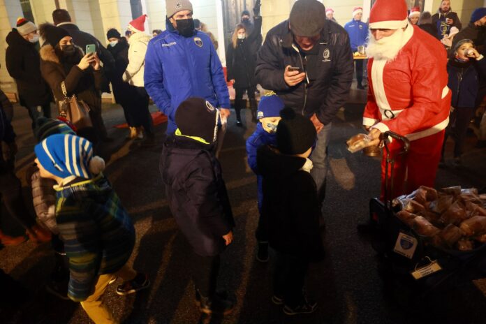 Ai bambini e ragazzi presenti la società ha voluto offrire una cioccolata calda e una fetta di panettone omaggiandoli anche di un piccolo dono natalizio consegnato personalmente da… Babbo Natale.