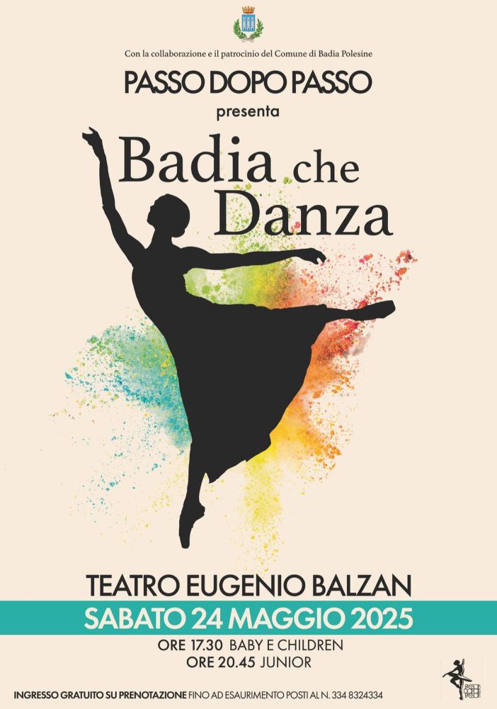 Badia Polesine (RO) – Per la prima volta sul palco del Teatro Eugenio Balzan, la magia della danza prende vita grazie alla Passo Dopo Passo Academy. Con il patrocinio del Comune di Badia Polesine e la collaborazione dell’Ufficio Cultura, sabato 24 maggio 2025 andrà in scena una straordinaria kermesse di danza classica e contemporanea, dove eleganza, emozione e passione si fondono in uno spettacolo unico.