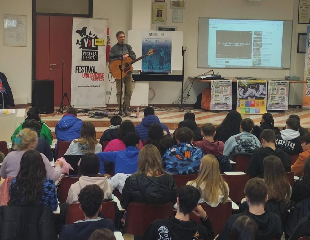 Al termine gli studenti hanno avuto la possibilità di confrontarsi direttamente con lui su come nasce una canzone (dalla stesura del testo al messaggio da veicolare) ma, soprattutto, su quale sia il ruolo della musica nella vita di tutti noi e su quanto possa essere uno strumento privilegiato per promuovere valori significativi, soprattutto legati ai diritti umani, e tentare di migliorare il mondo che ci circonda.