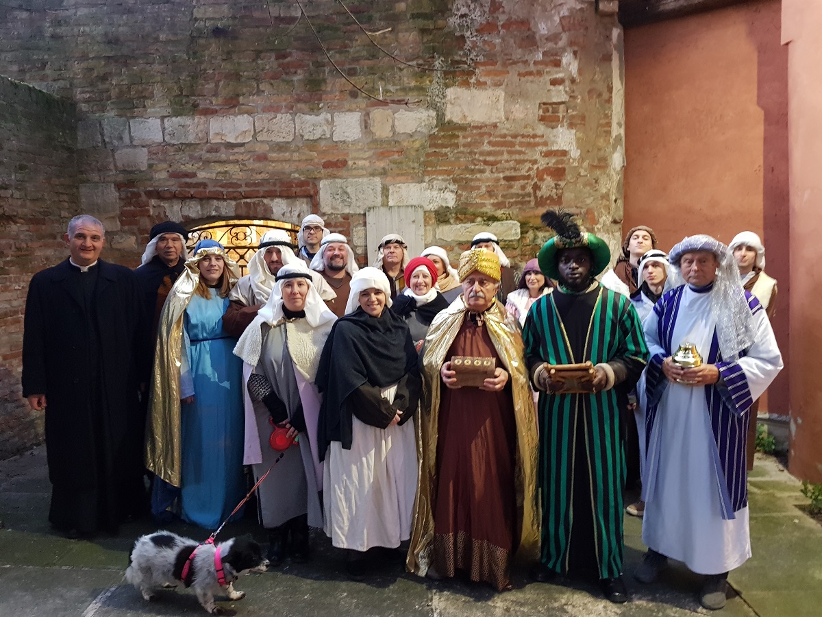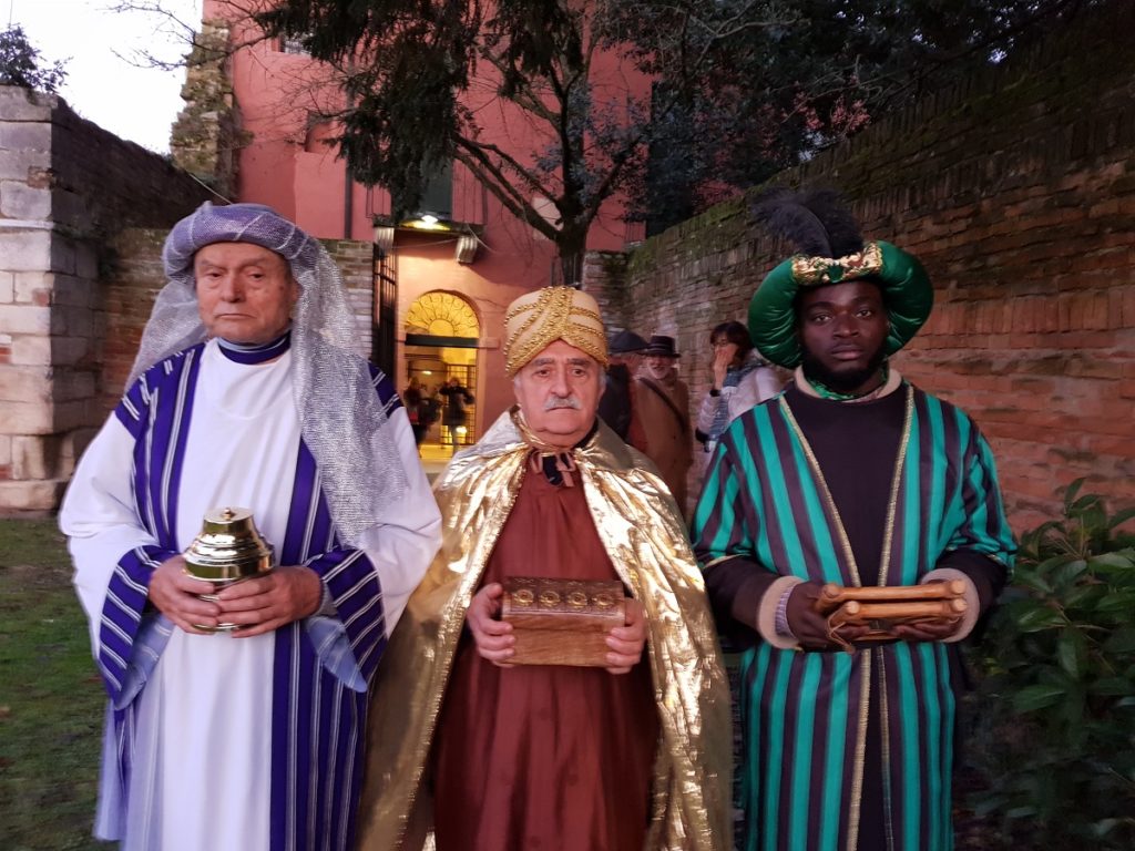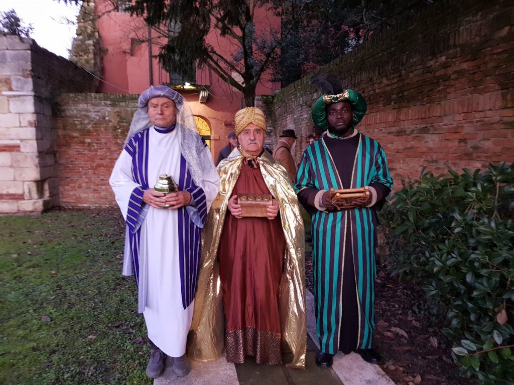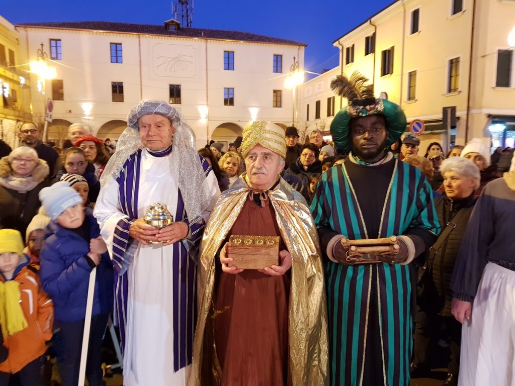 Badia Polesine (RO) – Buon successo della seconda edizione del Presepe Vivente con l’arrivo dei Re Magi che il 6 gennaio scorso ha fatto vivere ai tanti presenti in Piazza Vittorio Emanuele molte emozioni. L’iniziativa, fortemente voluta dalla Parrocchia di San Giovanni Battista, è stata realizzata dal Gruppo Teatrale “Il Mosaico” con la collaborazione della Pro Loco di Badia Polesine e dell’Associazione Operatori Economici Badiesi e con il patrocinio dell’Amministrazione Comunale.