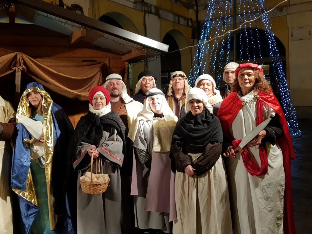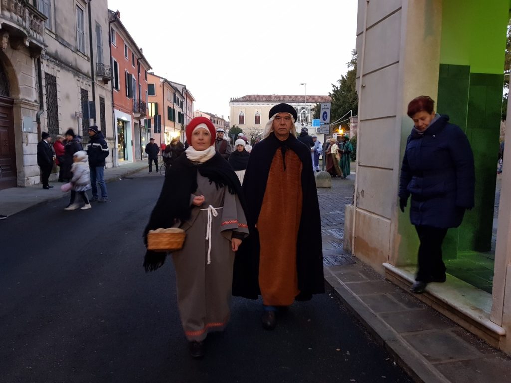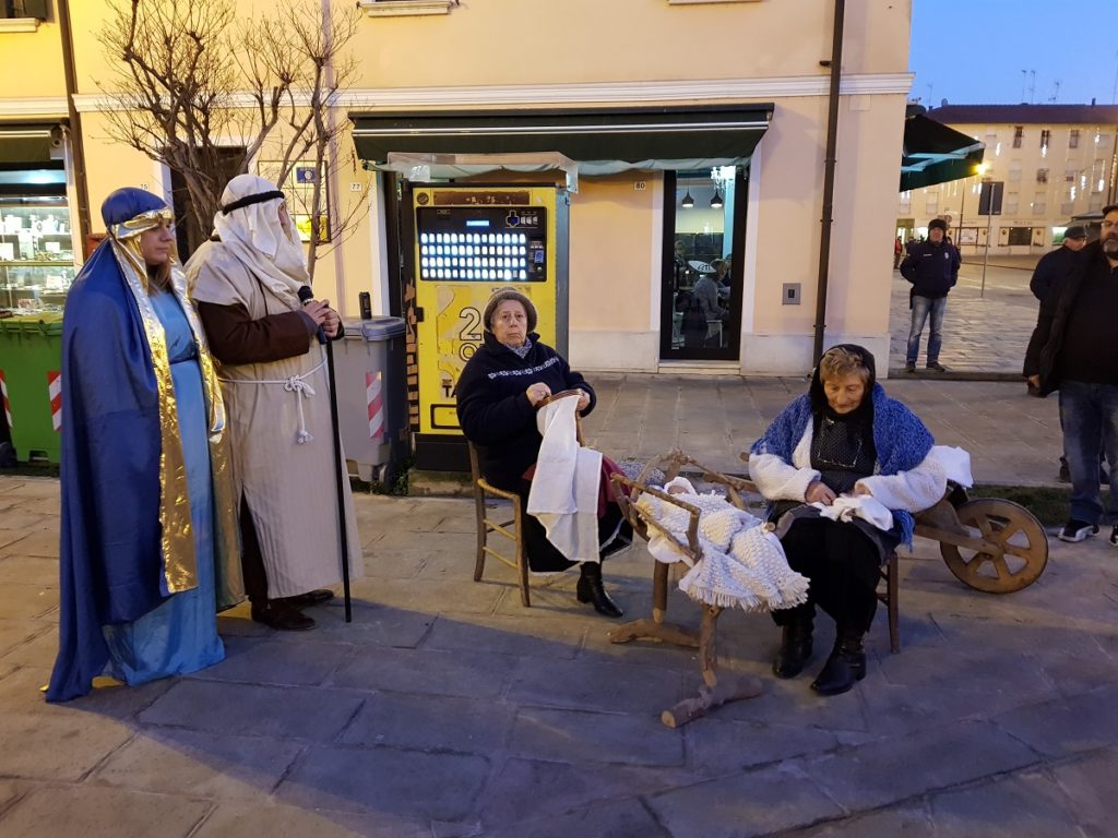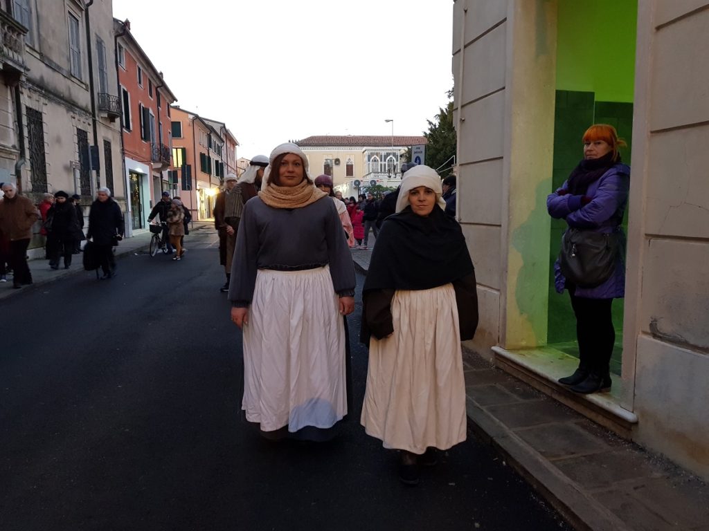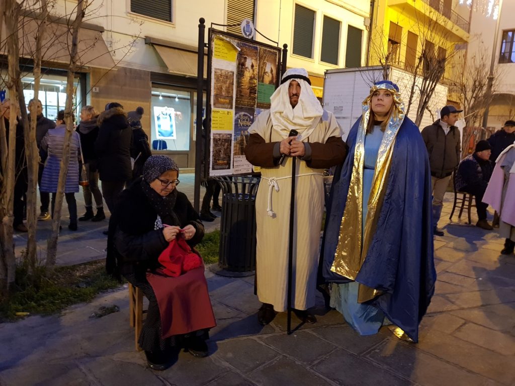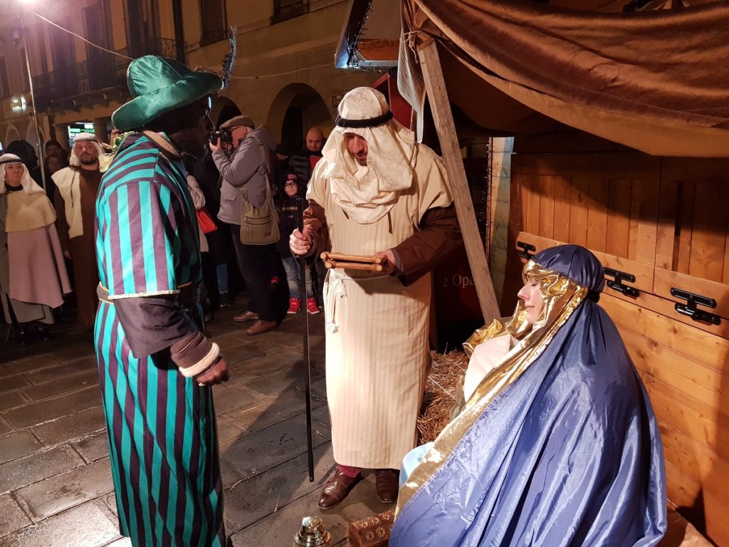 Oltre 40 i figuranti, tra quelli che hanno sfilato in corteo partendo da Piazza Vangadizza e quelli presenti lungo il tragitto nelle diverse postazioni in rappresentanza degli antichi mestieri. Il tutto accompagnato dalla diffusione di musiche della tradizione natalizia, dal suono di zampogne e ciaramelle, dalla lettura della celebre “Notte Santa” del poeta Guido Gozzano e di alcuni versetti tratti dal Vangelo.
