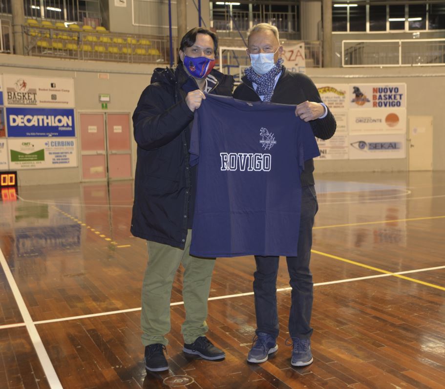 A metà gara c’è stato un momento molto emozionante. Il presidente Gionata Morello ha infatti consegnato la maglietta del Nuovo Basket Rovigo a Giorgio Osti, classe 1936, che è uno dei primi giocatori della pallacanestro rodigina e che sta aiutando il club delle Pantere a ricostruire la storia del basket maschile del capoluogo.