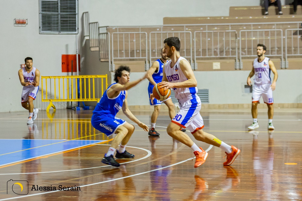 Cambia poco la musica nel secondo quarto. Rovigo deve inseguire il Mestrino del solito monumentale Frasson, e fa molta fatica a trovare la via del canestro dalla lunga distanza e pure ad interpretare qualche fischio arbitrale. A metà gara, il Sekal è sotto di due lunghezze. La terza ripresa è vinta dal Mestrino complice le polveri bagnate di alcuni cecchini rossoblù. Ma la forza di questo Sekal è la panchina lunga e le diverse opzioni che coach Gallani ha a disposizione. Opzioni che sono aumentate ulteriormente grazie all’arrivo di Sandal, autore anche di una bella schiacciata a due mani. Così, se Pusinanti, Guarini e Caselli sono in giornata storta in fase offensiva, dal mazzo coach Gallani può pescare altre tre carte vincenti: Bertocco, Tiberio e, appunto, Sandal. E in effetti, Rovigo ha giocato come sa fare – complice un Mestrino che ha terminato la benzina – solamente nell’ultima frazione, rifilando un parziale di 21 a 4 che ha condannato ad una sconfitta onorevole il Mestrino, che sicuramente potrà dire la sua nella Poule Promozione.