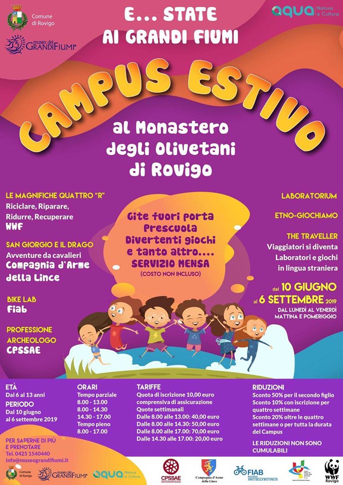 ROVIGO – È iniziata giovedì 11 luglio, con il primo incontro, la collaborazione dell’associazione FIAB Federazione Italiana Amici della Bici di Rovigo con il Comune di Rovigo nell’ambito del Campus estivo E…state ai Grandi Fiumi che l’Assessorato alla Cultura ha promosso con l’organizzazione Aqua a favore dei bambini dai 6 ai 13 anni e delle loro famiglie.