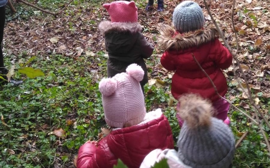 Nelle prime uscite realizzate i bambini hanno esplorato e raccolto materiale con cui hanno composto, nei laboratori creativi, oggetti e decorazioni natalizie. Prima della manualità e della creatività hanno quindi fatto esperienza di socializzazione, osservazione, riconoscimento delle piante, lunghe camminate; hanno stimolato la curiosità, appreso regole di comportamento in gruppo e di rispetto dell’ambiente; tra le varie attività, la creazione di un simpatico rituale che prevede una filastrocca di saluto al bosco come segno di ringraziamento per l’ospitalità.