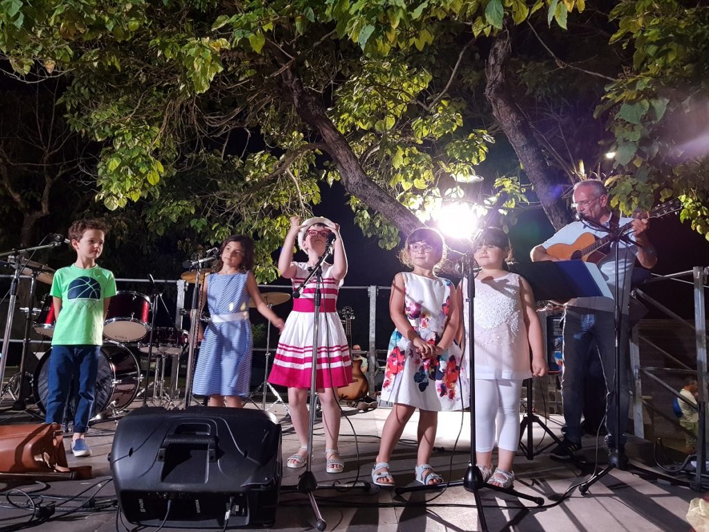 Ad aprire la serata sono state Cecilia Giraldini e Matilde Cocchieri che hanno presentato il brano “Memole dolce Memole”. A seguire, si sono esibiti nell’ordine: Giada Barison (Quarantaquattro gatti); Mattia De Vecchi (Faccio quello che voglio); Sofia Dalla Villa (Per un milione); Cecilia Giraldini e Mattia De Vecchi (Volevo un gatto nero); Matilde Cocchieri e Giada Barison (La canzone di Marinella); Mattia De Vecchi e Sofia Dalla Villa (Il gatto e la volpe); Sofia Dalla Villa (A modo tuo). È giunto poi il momento dell’esibizione alla batteria di Gabriele De Martino con “Waves of luv”, seguito a ruota dal fratello Lorenzo De Martino che, sempre alla batteria, ha presentato al pubblico l’intramontabile “Hotel California” degli Eagles. Prima del gran finale, è toccato all’inedito duo dei sindaci, formato da Simone Caniato (sindaco dei bambini di Pontecchio Polesine) e Daniele Panella (sindaco di Bosaro), suonare con le loro chitarre la celebre “(I can’t get no) satisfaction” dei Rolling Stones. Infine, tutti insieme sul palco a cantare le ultime due canzoni in programma: “Vengo anch’io. No, tu no” e “Come un pittore”, magistralmente accompagnati da Fabio Rossi e Paolo Bettarello alle chitarre.