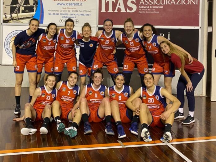 L’inizio del quarto finale è da spavento: 7-0 in due minuti compresa la tripla di Chicchisiola e vantaggio che cresce al +15 (44-29). Rosin chiude il parziale con un canestro da sotto ma le rodigine hanno ormai preso il controllo della partita. Nel finale, da squadra matura, la Solmec non si accontenta e amplia il vantaggio (break di 8-0) sino al +22 finale che, in caso di arrivo alla pari con altre squadre, conterà moltissimo.