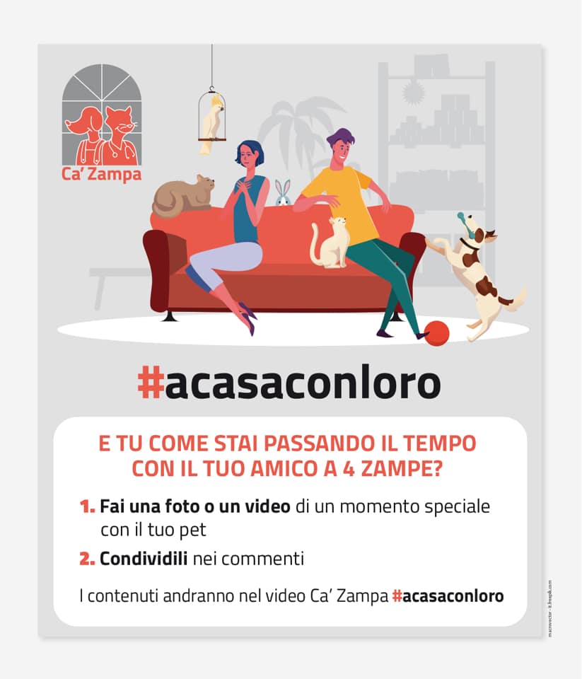 L’iniziativa, dal titolo #acasaconloro consiste in una campagna di condivisione social che includa le proprie foto e i propri video dei momenti più belli in compagnia del proprio animale domestico.