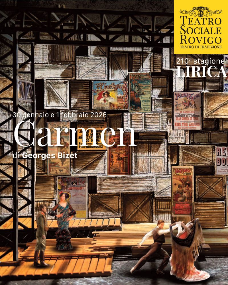 Carmen arriva a Rovigo come nuova produzione del Teatro Sociale, realizzata in collaborazione con il Teatro Mario Del Monaco, il Comune di Padova – Teatro Verdi, la Fondazione Teatro Verdi di Pisa e la Rete Lirica delle Marche. Un allestimento che ha già suscitato attenzione nelle recite ospitate dai teatri partner e che conferma il ruolo del Teatro Sociale di Rovigo come luogo di produzione culturale, oltre che di programmazione.
