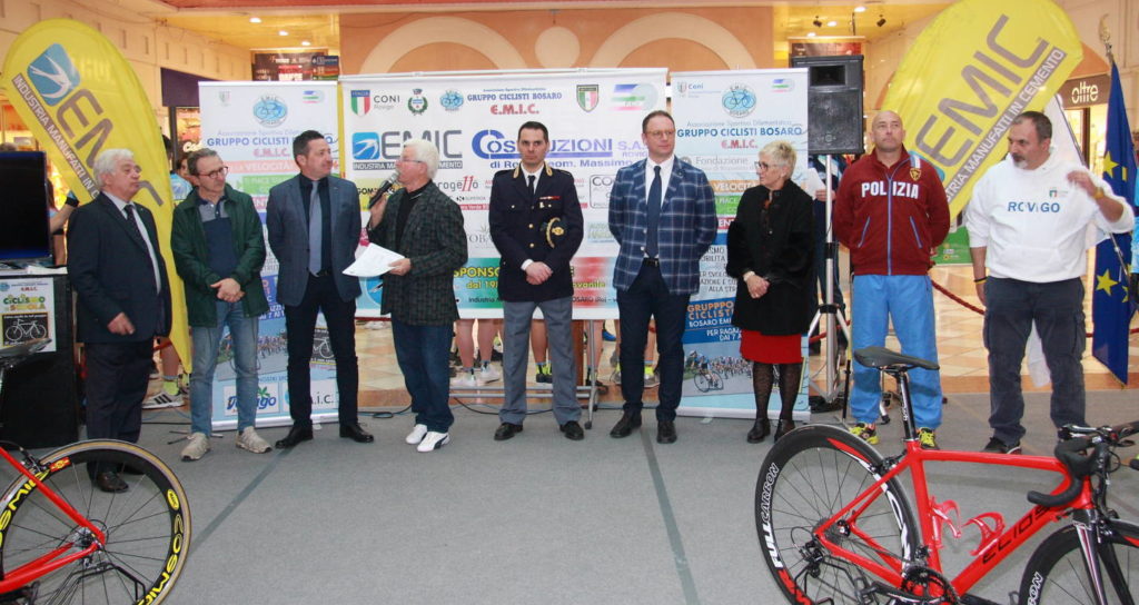 ROVIGO – Domenica 17 marzo presso il Centro Commerciale “La Fattoria” si è tenuta la presentazione ufficiale degli atleti del gruppo ciclistico A.S.D Bosaro Emic. La società, guidata dal presidente Massimo Rossi e sostenuta dalla storica ditta EMIC Industria manufatti in cemento della famiglia Rondina, ha conosciuto un’importante crescita nel corso degli anni potendo contare su un nutrito numero di atleti che con il loro impegno e le loro performances, affinate da preparatori atletici di alto livello, hanno apportato valore aggiunto alla squadra regalando vittorie e riconoscimenti prestigiosi a livello nazionale, stagione dopo stagione.