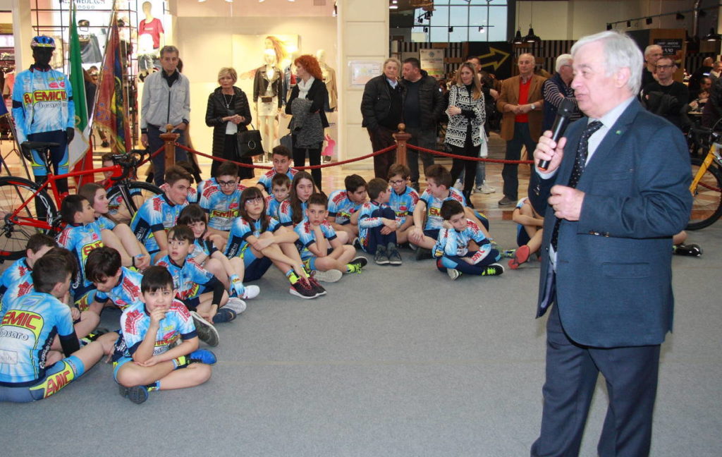 L’evento è stato inaugurato dal presidente Massimo Rossi affiancato da Cristian, Fiammetta e Dorella Rondina, che dopo aver ringraziato il Direttore del Centro Commerciale La Fattoria Marco Cavallaro per la rinnovata disponibilità a concedere lo spazio promozionale, i main sponsors E.M.I.C. e Tobago di Bosaro e la ditta ”Rossi Costruzioni” per il fondamentale sostegno alla crescita dei giovani ciclisti, i preparatori atletici per il loro instancabile e prezioso lavoro e tutti gli ospiti intervenuti, ha illustrato le attività in programma per la nuova stagione: non solo gare in mountain bike e bici da corsa ma anche progetti di sicurezza stradale all’interno delle scuole, merito del successo riscosso negli anni scorsi dal progetto “Pinocchio” della Federazione Ciclistica e dal progetto “Icaro” della Polizia di Stato.