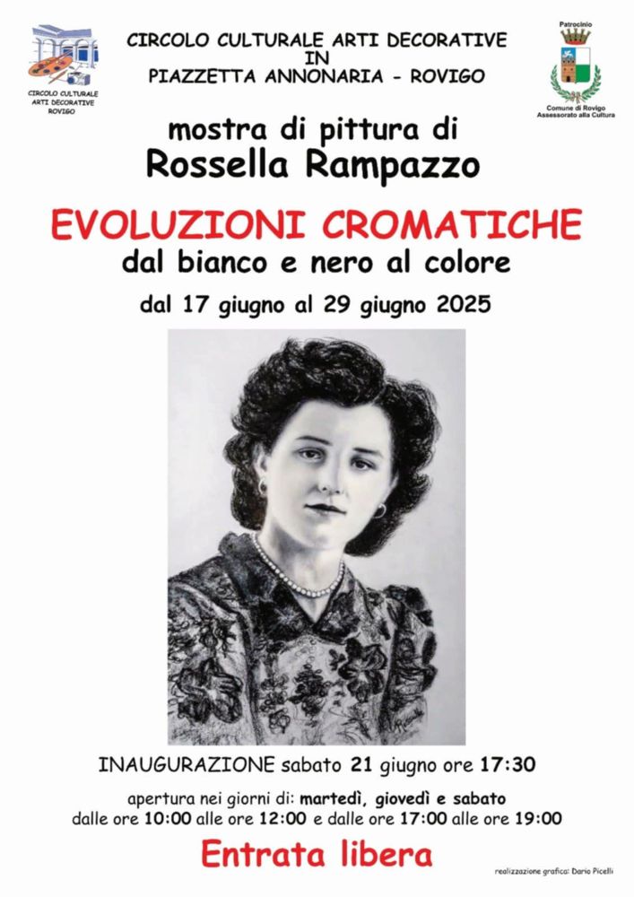 L’inaugurazione ufficiale della mostra è in programma sabato 21 giugno alle ore 17.30, con ingresso libero. Le opere saranno visitabili nei giorni di martedì, giovedì e sabato, con orario 10.00–12.00 e 17.00–19.00. L’iniziativa è patrocinata dal Comune di Rovigo.