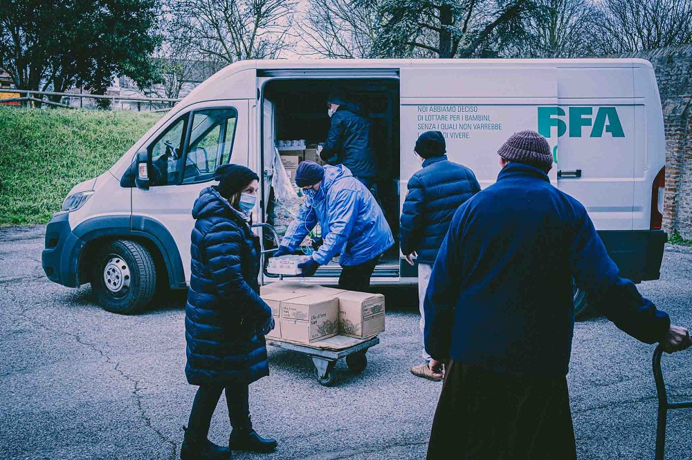 ROVIGO – Nei giorni scorsi il furgone di Faedesfa No Profit è arrivato al Convento dei Frati Cappuccini di Rovigo per una donazione: a bordo un carico di derrate alimentari, donate alla mensa dei poveri del convento del capoluogo polesano. Mensa che continua ad operare e aiutare i bisognosi anche durante la pandemia da coronavirus.