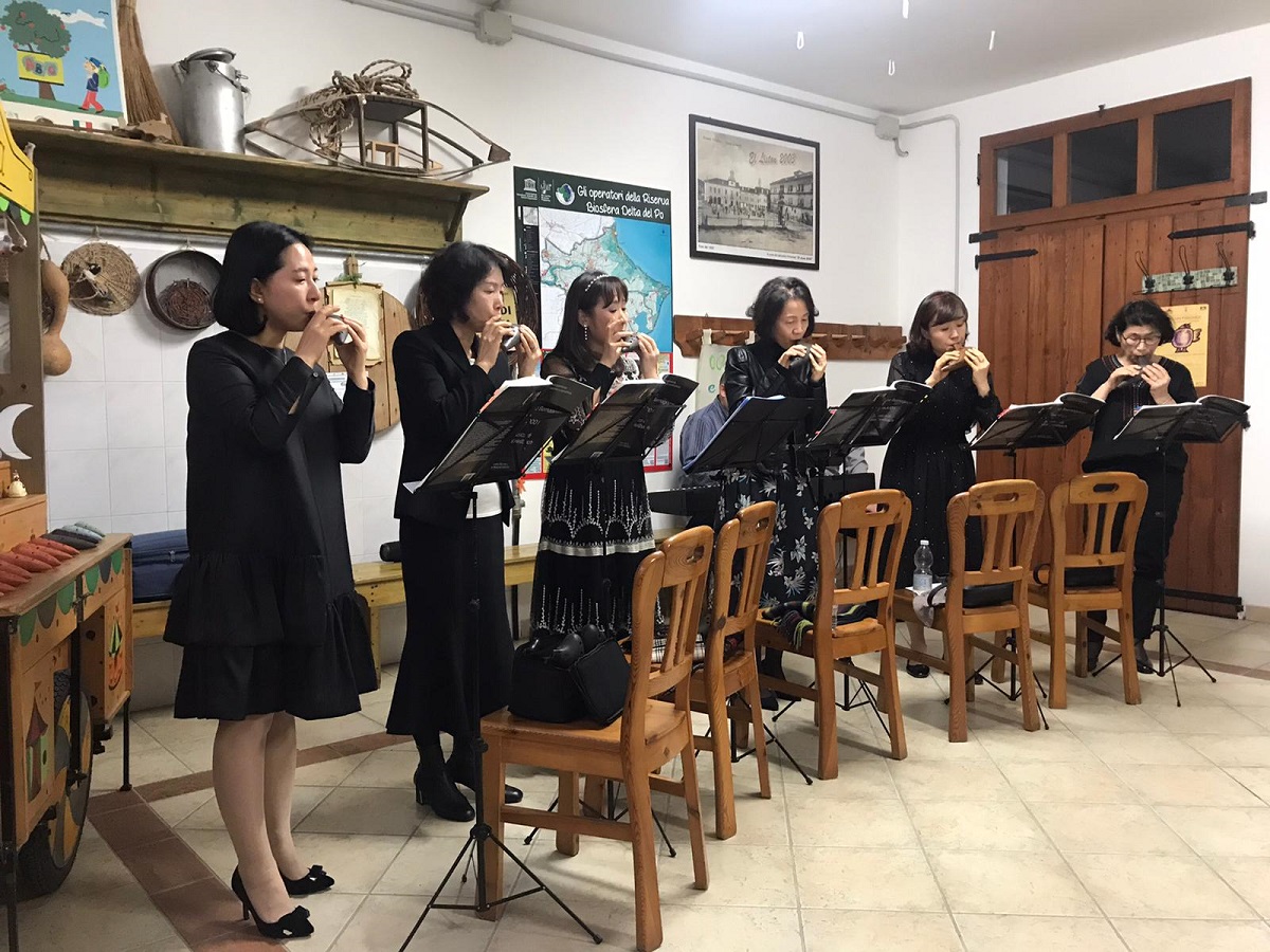 Da parte degli amministratori è stato dato il benvenuto ai musicisti coreani. Durante l’incontro sono state annunciate le date del prossimo “Festival internazionale dell’ocarina” che si terrà a Grillara e dintorni l’11, 12 e 13 settembre e sarà una festa dove si legheranno la passione per la musica, il territorio e il buon cibo. Lo ha comunicato Turolla il direttore artistico. «Questo strumento fa parte della nostra cultura da più di un secolo – ha spiegato Benvenuto Fecchio, padrone di casa – Stiamo lavorando da tempo perché la nostra volontà è quella di divulgare la passione per questo strumento e proporre corsi. Io lo trovo uno strumento magico che crea stupore anche se è fatto con poco. È lo strumento che nasce proprio dalla nostra terra, dai campi e dal fiume». «I nostri ragazzi dell’istituto comprensivo di Taglio di Po sanno tutti suonare l’ocarina – ha proseguito Marafante – un modo per tenerli legati alle radici e una grande soddisfazione per loro, per le famiglie e per noi che intendiamo portare avanti nel tempo questa tradizione».