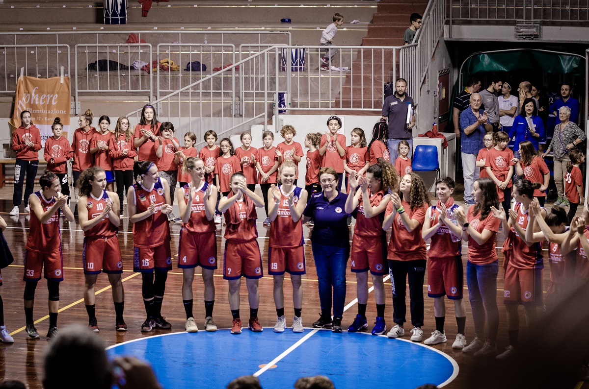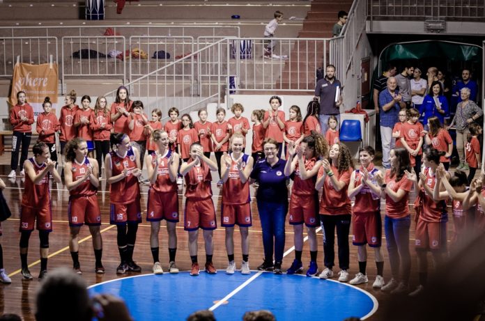 Mariapaola Galasso con le ragazze della Rhodigium Basket