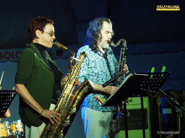 Dopo questa giovane band è stata la volta di Helga Plankensteiner Jelly Roll Plays Morton Quintet. Musicisti a dir poco sublimi che hanno saputo trasformare gli strumenti a fiato, in un veicolo per restare in stretto contatto con il pubblico di appassionati del genere. Sul palco di Rovigo è stato presentato il nuovo progetto, dedicato interamente a composizioni di Jelly Roll Morton, grande pioniere, inventore del jazz. La formazione è composta da ben tre fiati dal registro basso: sax baritono, clarinetto basso e tuba. Un progetto artistico che Helga ha concretizzato nel Cd “Jelly Roll Plays Morton“, pubblicato nel 2022 per l’etichetta berlinese Jazzwerkstatt.