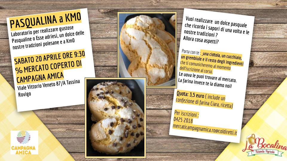 Appuntamento alle 9,30 per il laboratorio a cura di Silvia Bertazzo del gruppo Donne Impresa Coldiretti, titolare dell’azienda agricola “La Bocalina” accreditata anche per il turismo rurale. Durante il laboratorio si preparerà un dolce tipico e caratteristico della Pasqua e del cambiamento stagionale; ha le stesse sembianze della ‘fugassa’, si tratta di una focaccia dolce che nella terra veneta è un prodotto tipico. La sua ricetta sembra risalire agli inizi del ‘900, stiamo parlando della “Esse” che viene chiamata anche “Pasqualina” e andrebbe accompagnata a del buon vino o degustata con il caffellatte. Si può conservare dentro al sacchetto del pane e deve stare a temperatura ambiente.